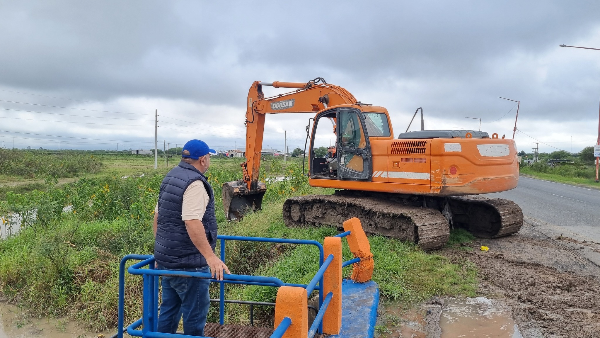 Ante esta situación, personal del SPAP junto con funcionarios municipales se trasladaron al lugar para buscar una solución rápida que evitara la entrada continua de agua proveniente de los campos. Con la ayuda de una excavadora, se taparon los accesos por donde el agua ingresaba, permitiendo así una intervención temporal para controlar el flujo.