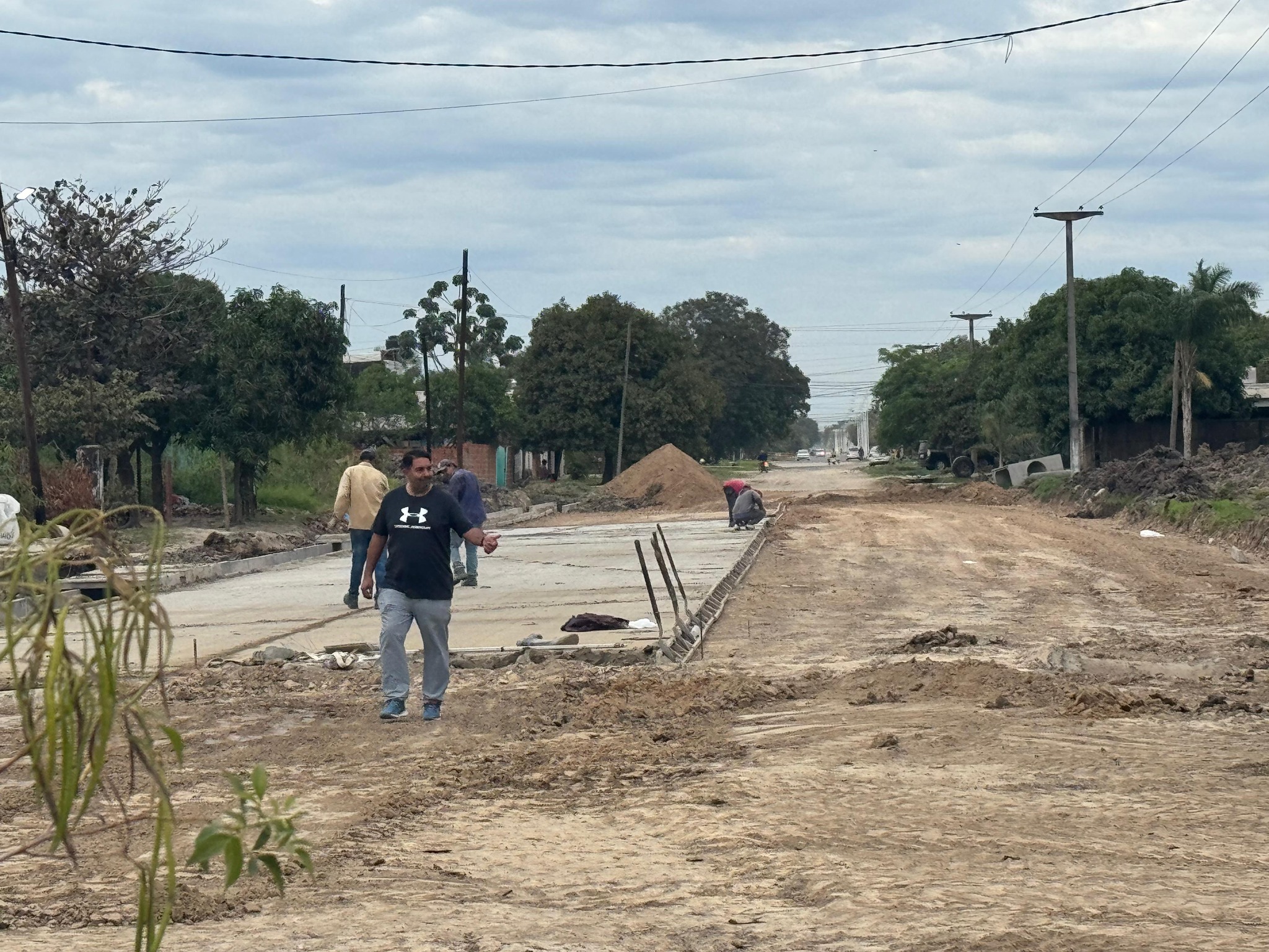 Actualmente, se está colocando la capa de RDC, que funciona como base previa al hormigón. Previamente, ya se habían ejecutado trabajos esenciales de infraestructura, como la construcción de un canal de grandes dimensiones paralelo a la avenida, fundamental para el correcto drenaje hacia canales como el Colombia.
