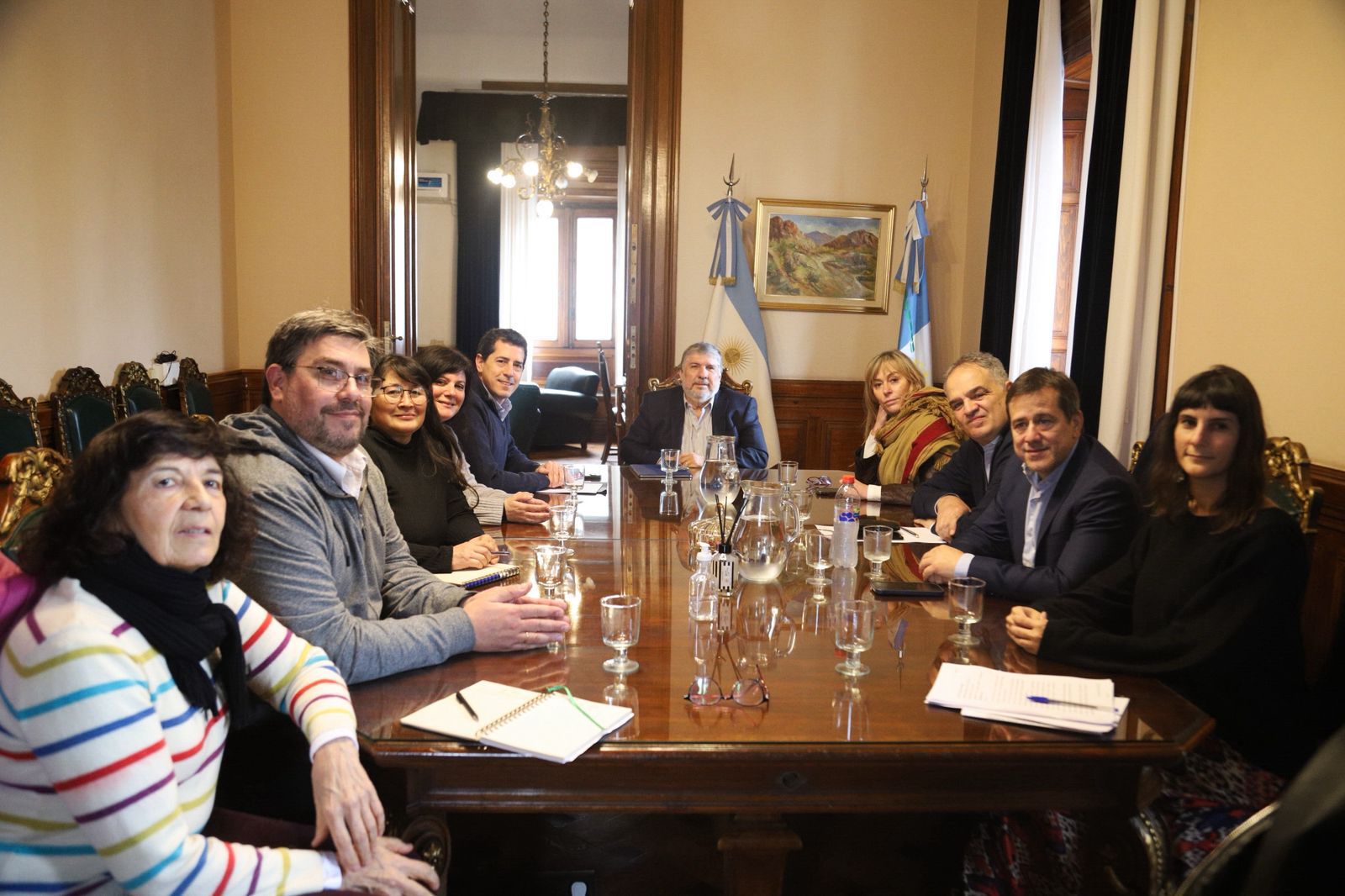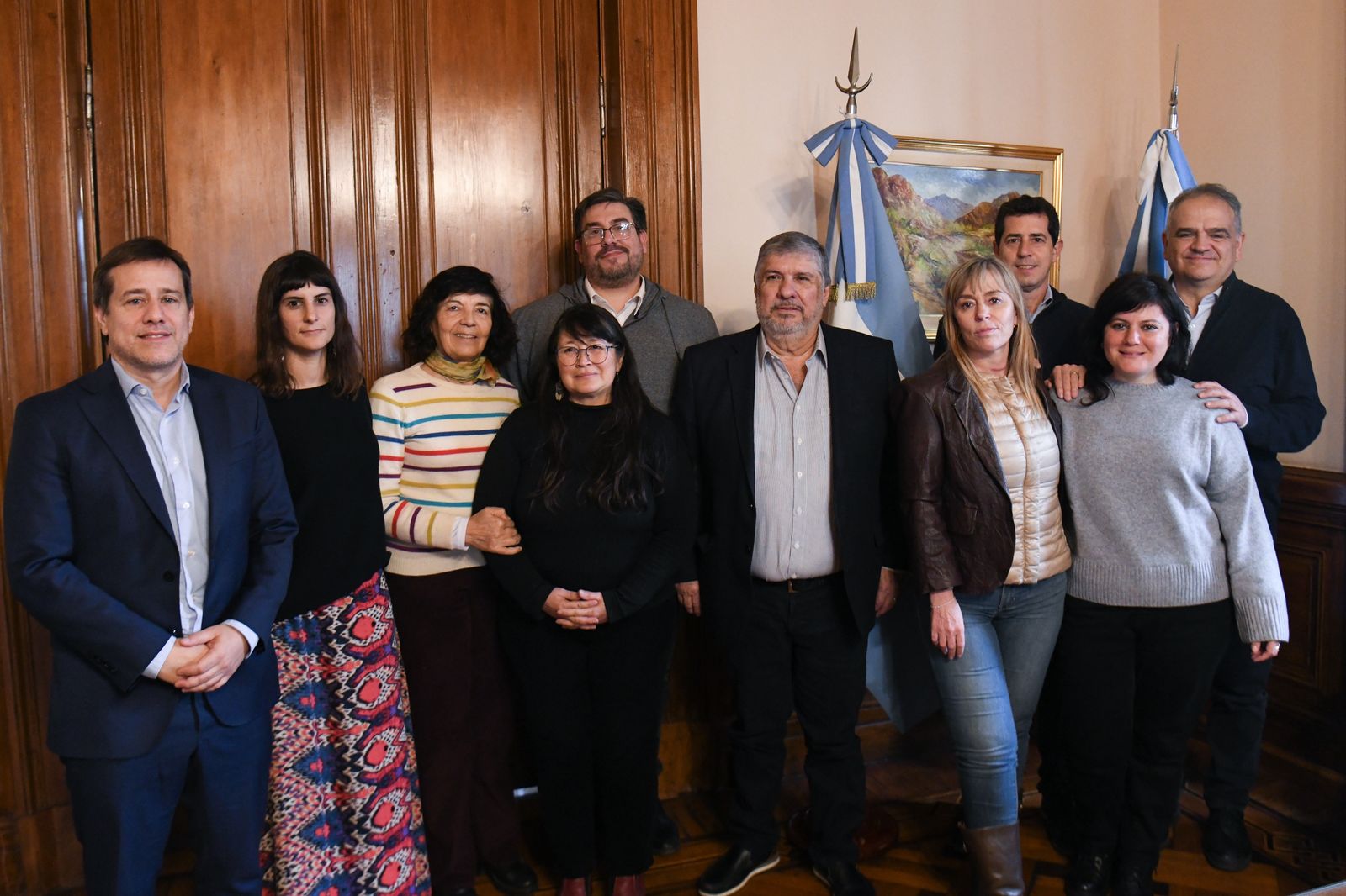 En la reunión participaron José Mayans, Juliana Di Tullio, Fernando Salino, Wado de Pedro y Mariano Recalde, junto a Guillermo Pérez Roisinblit, Paula Sansone, María Landaburu, Gladys Zalazar y Carolina Villella por parte de Abuelas de Plaza de Mayo.
