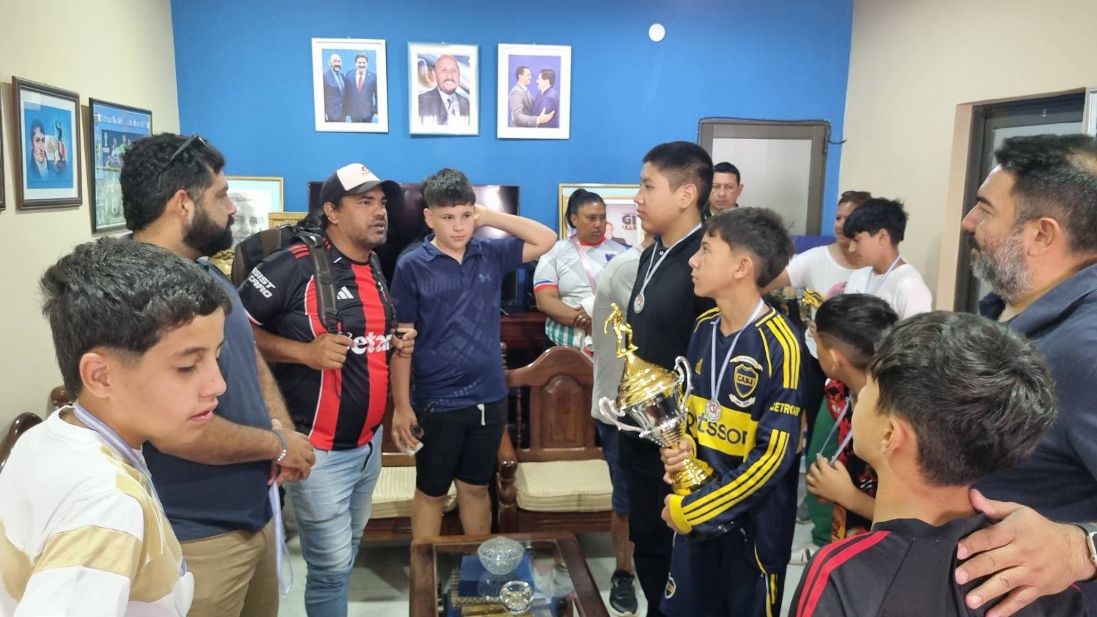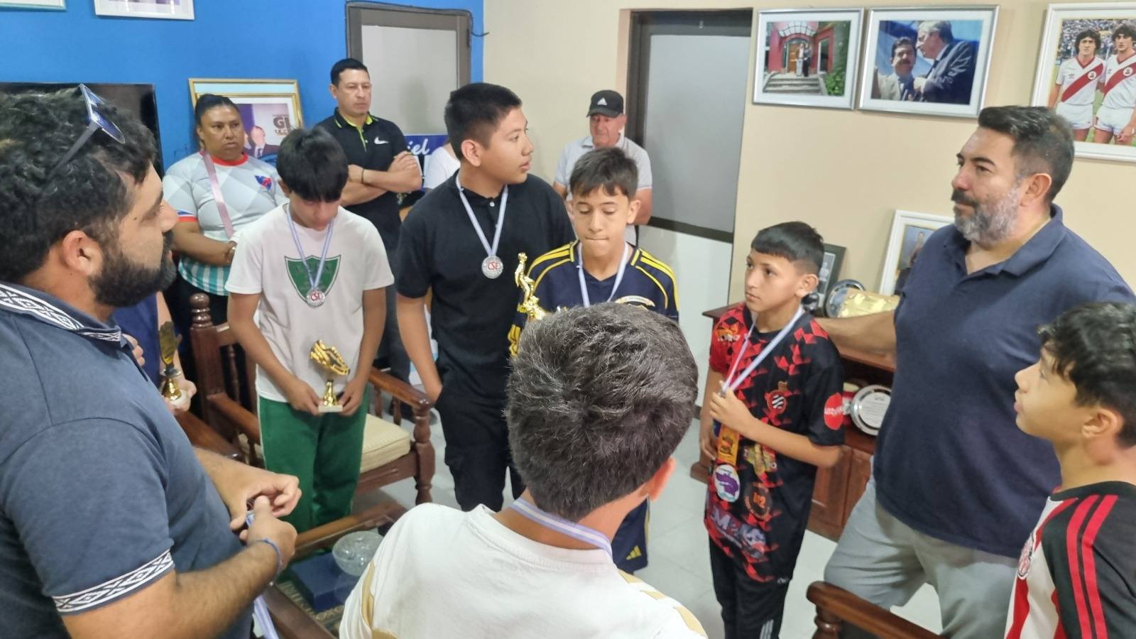 Un grupo de niños del equipo barrial “Deportivo Español”, acompañados por algunos padres, visitó este martes la casa comunal para agradecer el apoyo brindado por la Municipalidad de Clorinda. Los chicos llegaron con los trofeos obtenidos en el torneo disputado recientemente en Misión Tacaaglé, certamen al que pudieron asistir gracias al colectivo facilitado por el municipio.