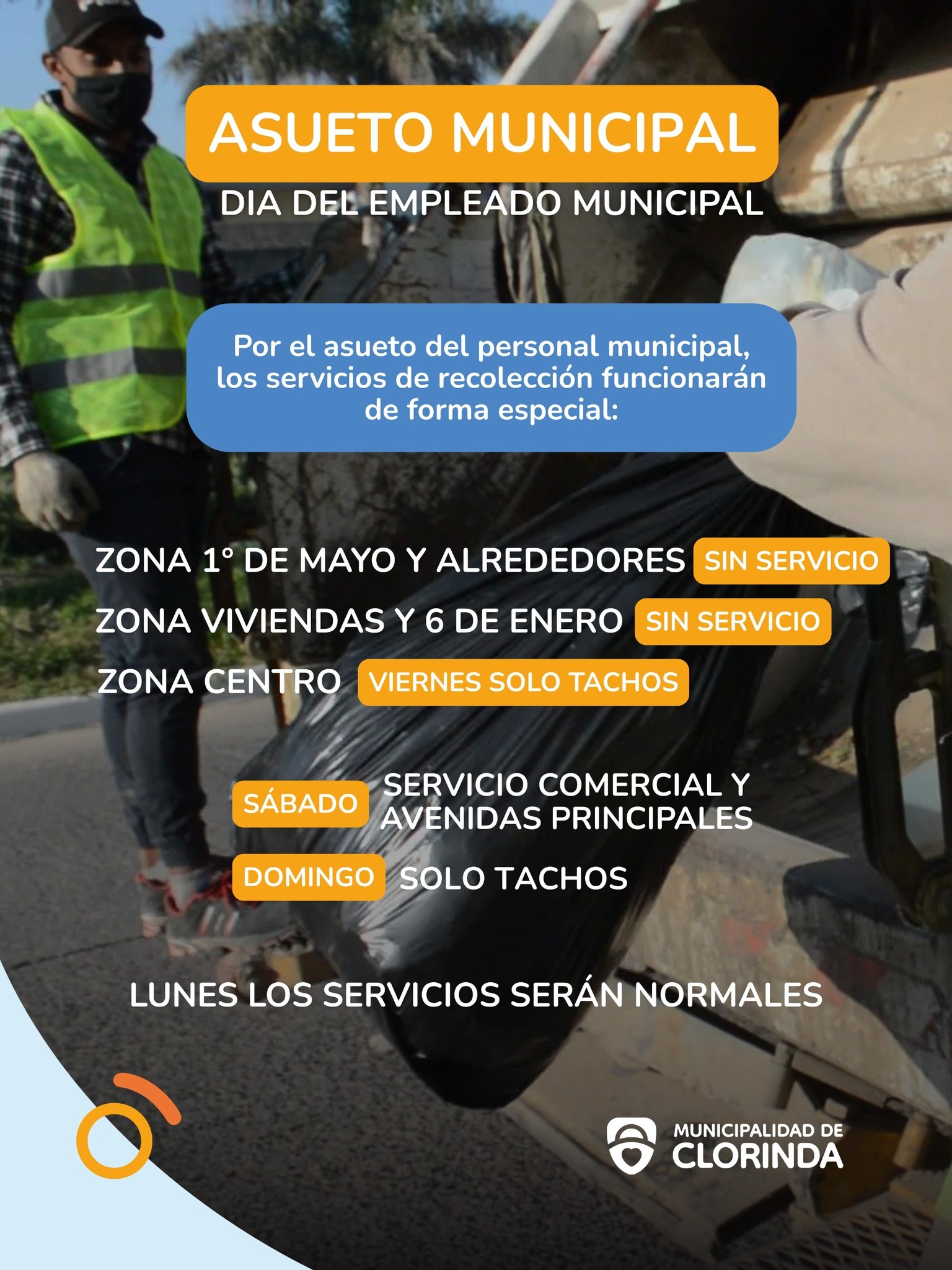 Este viernes no habrá servicio de recolección de residuos