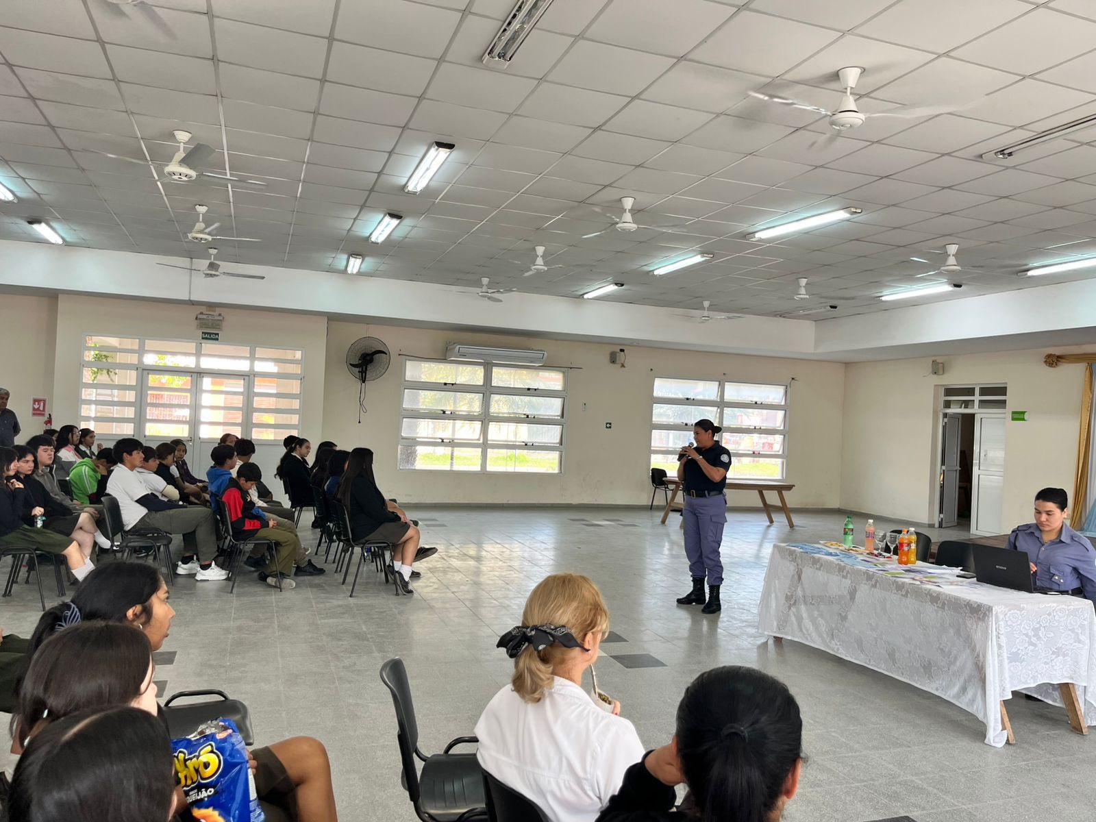 Oficiales de la Oficina de Género y Violencia Intrafamiliar brindaron una capacitación en la EPES N°92 de Clorinda, abordando violencia de género, acoso escolar, ciberbullying y grooming, con la participación activa de estudiantes y docentes.
