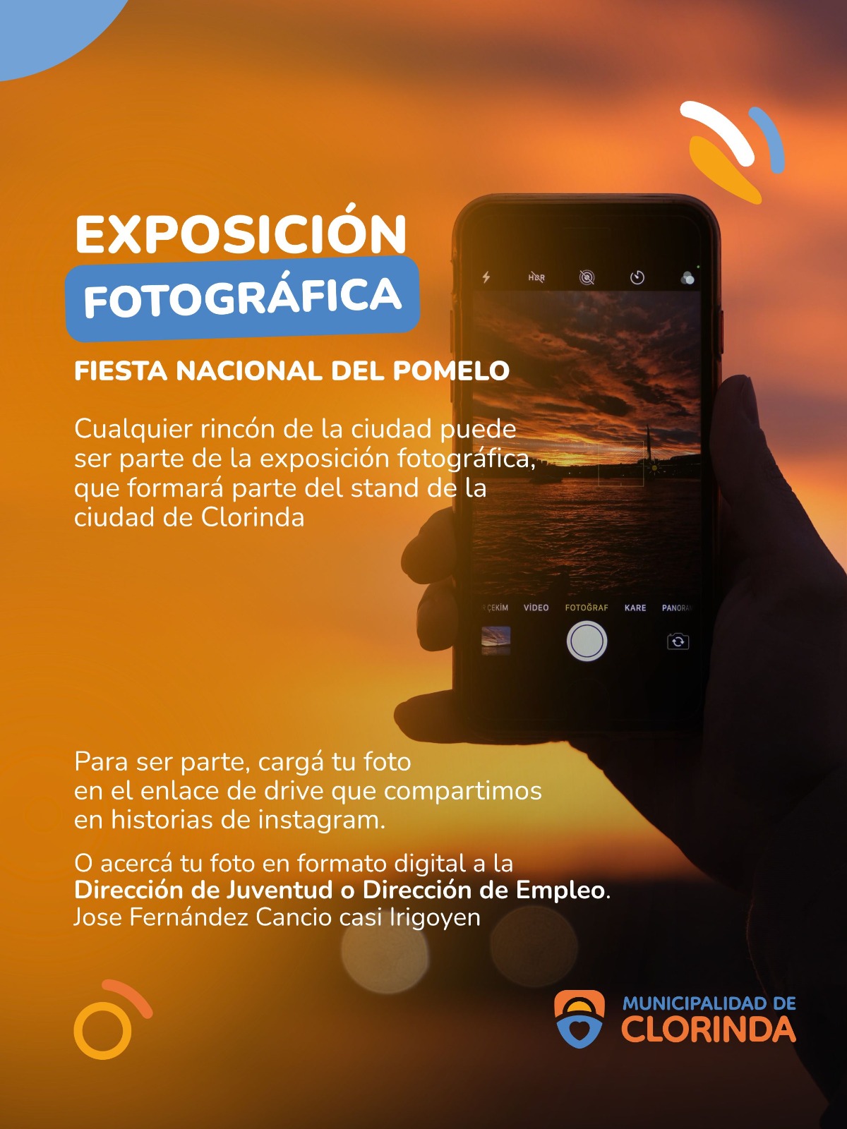 El municipio de Clorinda invita a los vecinos a sumarse a la Expo Imágenes que formará parte del stand local en la Fiesta Nacional del Pomelo. La propuesta busca mostrar fotografías que reflejen lugares, paisajes y momentos que identifican a la comunidad.