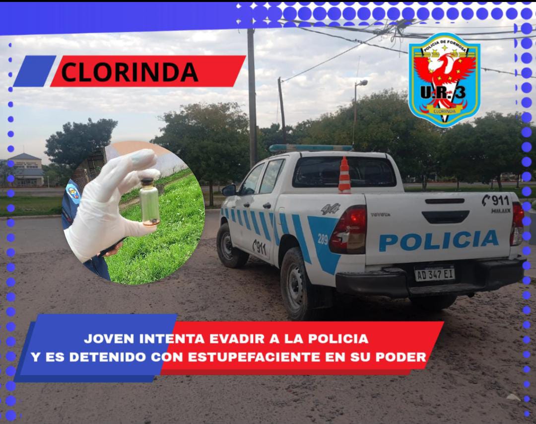 En Clorinda, un joven de 22 años fue detenido por la policía tras ser encontrado con marihuana y varios envoltorios de pasta base de cocaína, en un operativo realizado por la Unidad Regional N° 3.