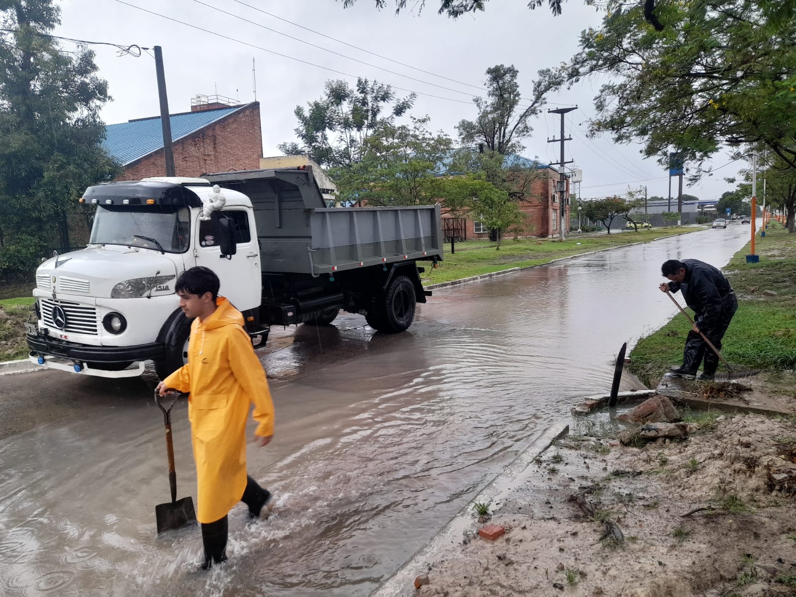 La Municipalidad de Clorinda con los diferentes equipos de obras públicas están trabajando desde el primer momento en toda la ciudad para ayudar a que tanta agua caída tenga el más rápido escurrimiento posible.